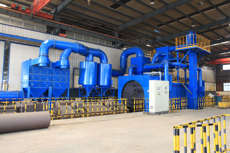 青島華旭機械為臨沂客戶定做的鋼管外壁拋丸機特點是拋丸器布置在合適的位置,工件邊進邊旋轉邊處理,可使不同管徑的鋼管拋丸效果一致,達到更好的效果。